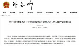 外交部:中方针对美方打压中国媒体驻美机构行为采取反制措施